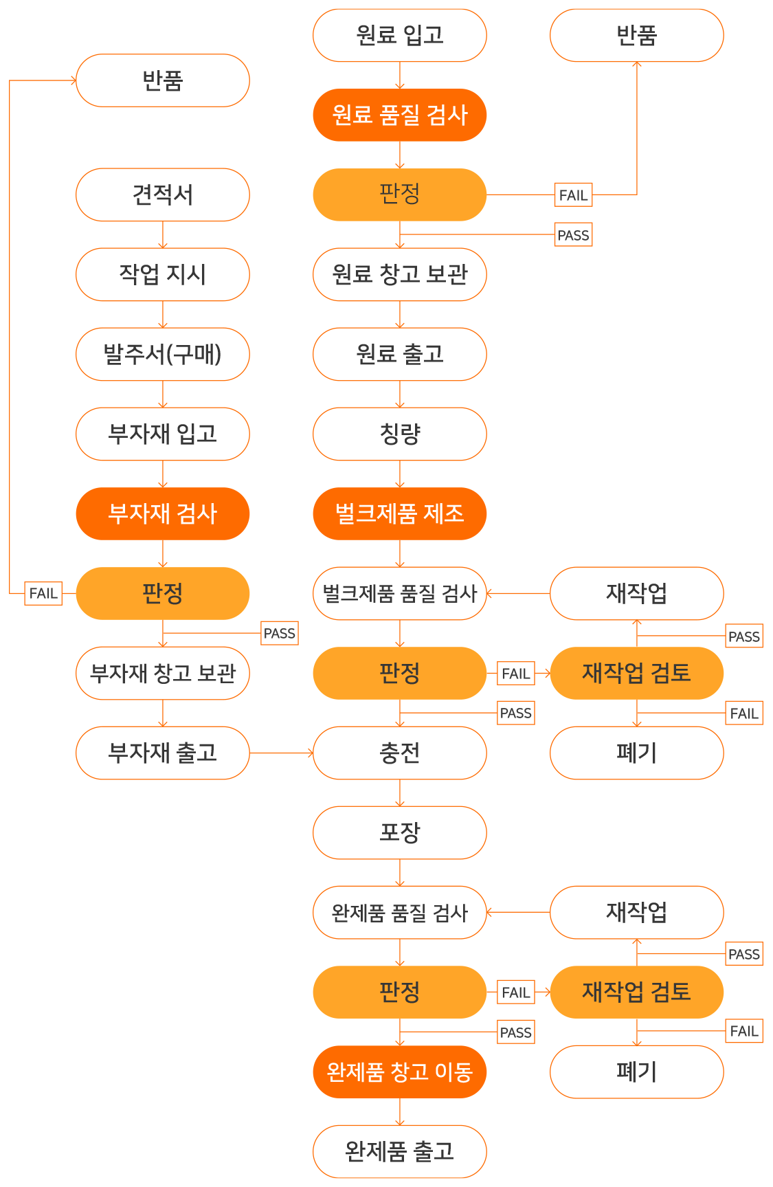 완제품 생산 이전에 기준에 맞게 생산이 되어져 있는지